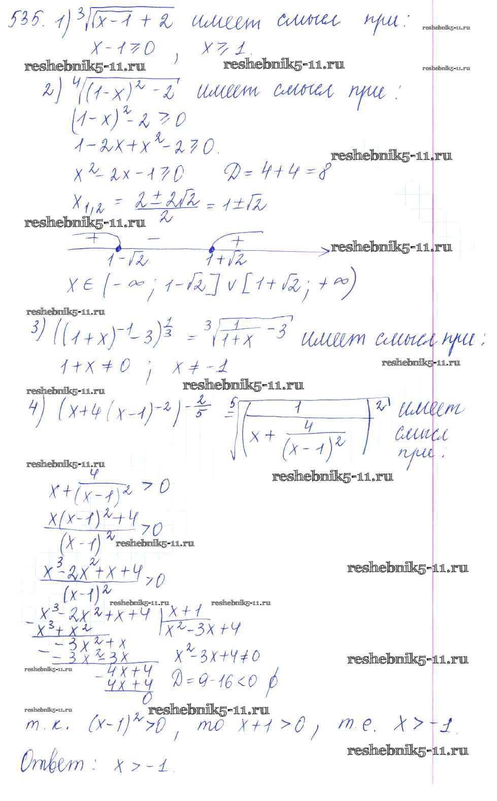 Готовая домашняя работа с ответами по Алгебре за 10 класс Колягин, Ткачёва, Федорова, Шабунин Учебник Базовый и углубленный уровень Просвещение 2017 ФГОС - Упражнения 535