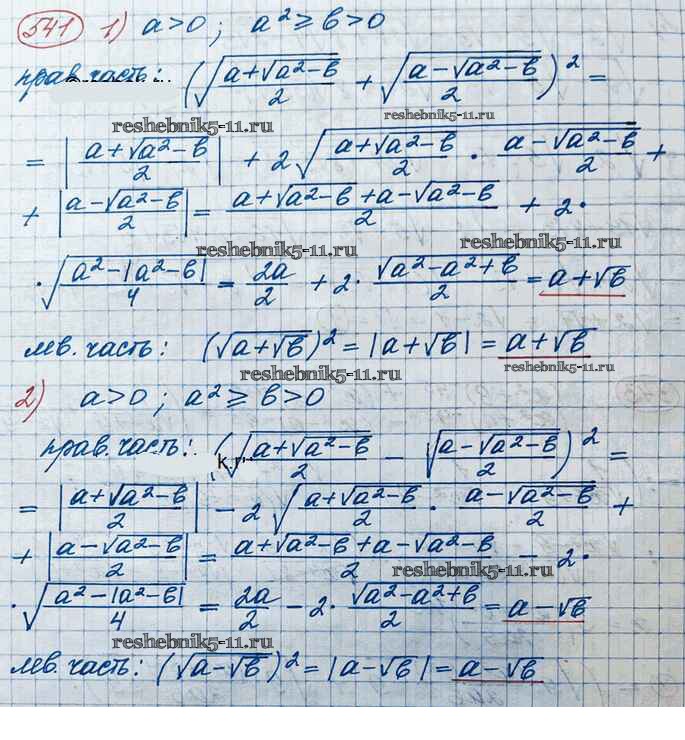 Готовая домашняя работа с ответами по Алгебре за 10 класс Колягин, Ткачёва, Федорова, Шабунин Учебник Базовый и углубленный уровень Просвещение 2017 ФГОС - Упражнения 541