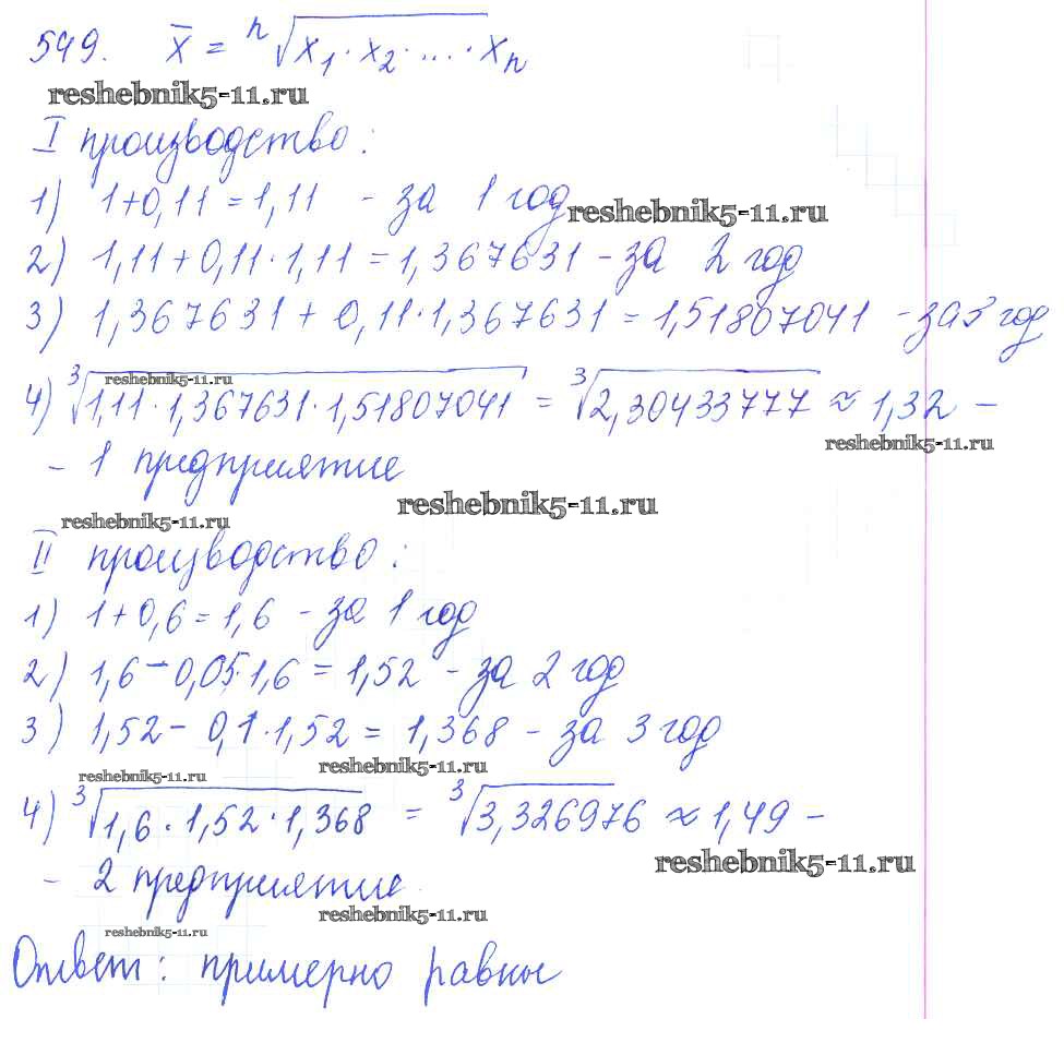 Готовая домашняя работа с ответами по Алгебре за 10 класс Колягин, Ткачёва, Федорова, Шабунин Учебник Базовый и углубленный уровень Просвещение 2017 ФГОС - Упражнения 549