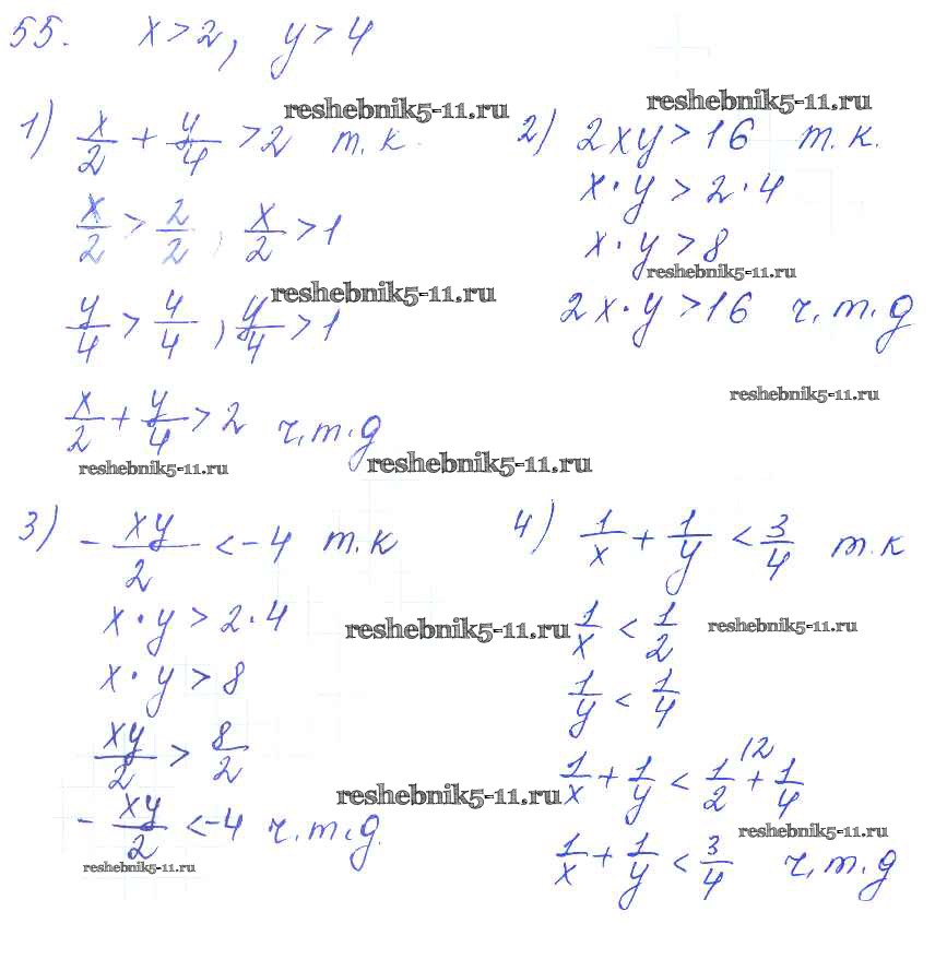 Готовая домашняя работа с ответами по Алгебре за 10 класс Колягин, Ткачёва, Федорова, Шабунин Учебник Базовый и углубленный уровень Просвещение 2017 ФГОС - Упражнения 55