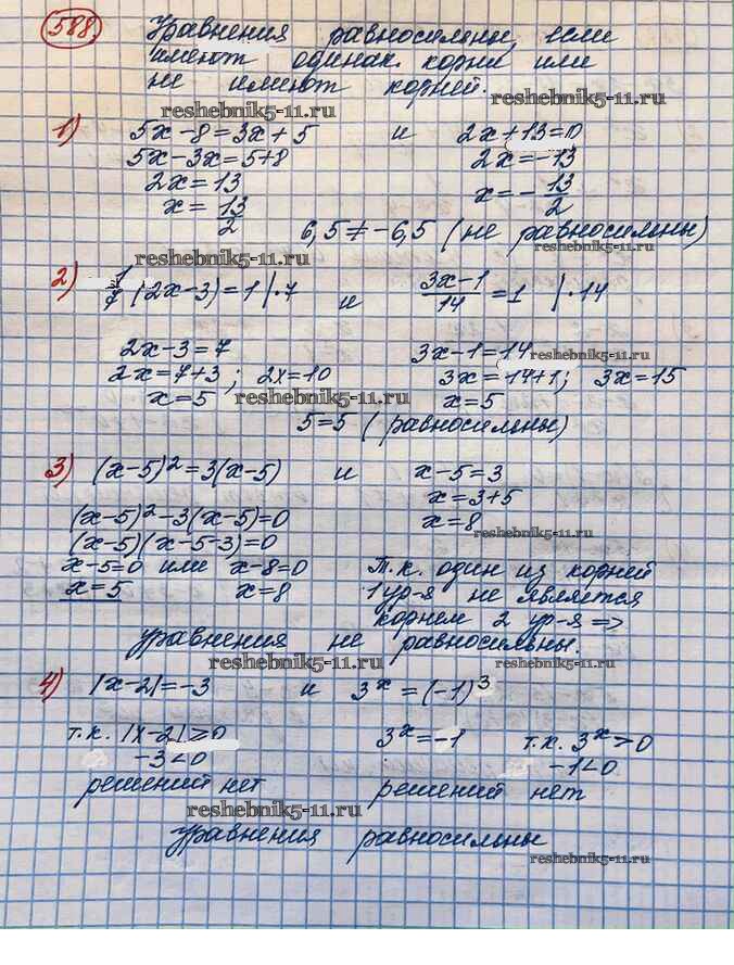 Готовая домашняя работа с ответами по Алгебре за 10 класс Колягин, Ткачёва, Федорова, Шабунин Учебник Базовый и углубленный уровень Просвещение 2017 ФГОС - Упражнения 588