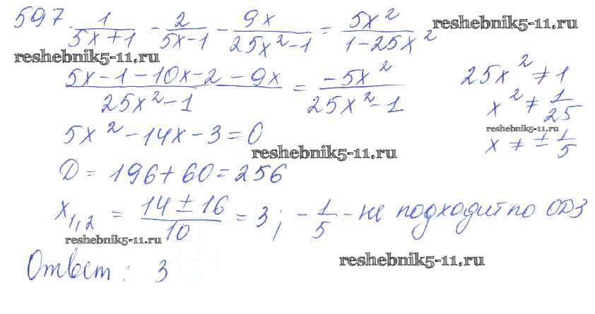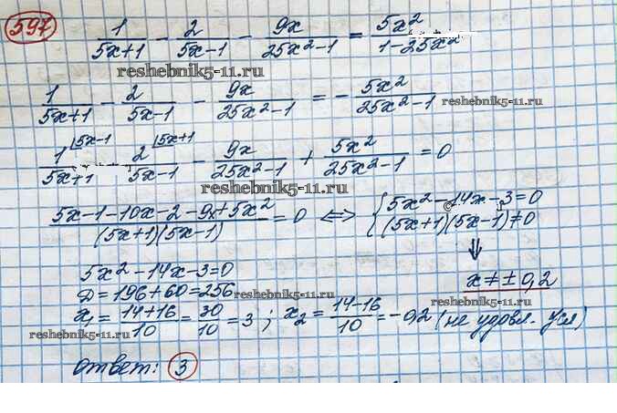 Готовая домашняя работа с ответами по Алгебре за 10 класс Колягин, Ткачёва, Федорова, Шабунин Учебник Базовый и углубленный уровень Просвещение 2017 ФГОС - Упражнения 597