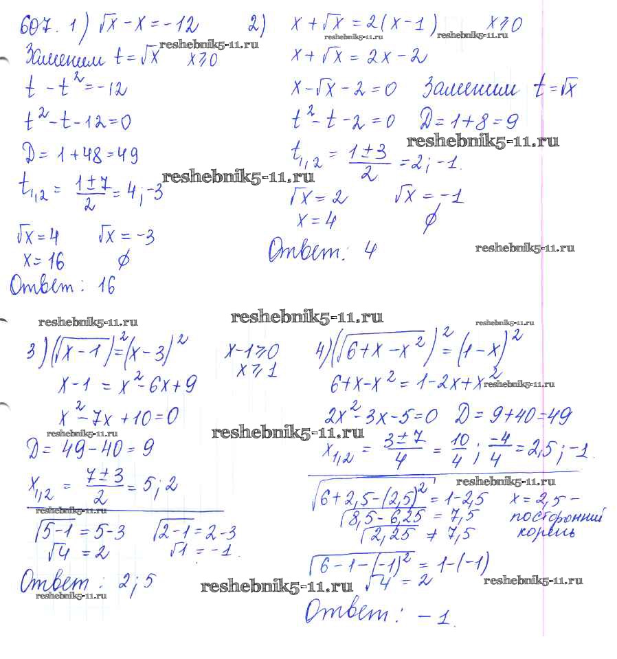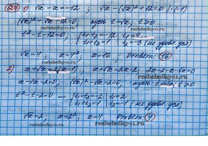 Готовая домашняя работа с ответами по Алгебре за 10 класс Колягин, Ткачёва, Федорова, Шабунин Учебник Базовый и углубленный уровень Просвещение 2017 ФГОС - Упражнения 607