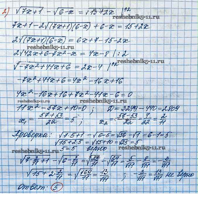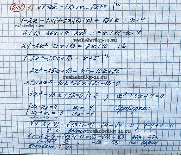 Готовая домашняя работа с ответами по Алгебре за 10 класс Колягин, Ткачёва, Федорова, Шабунин Учебник Базовый и углубленный уровень Просвещение 2017 ФГОС - Упражнения 611