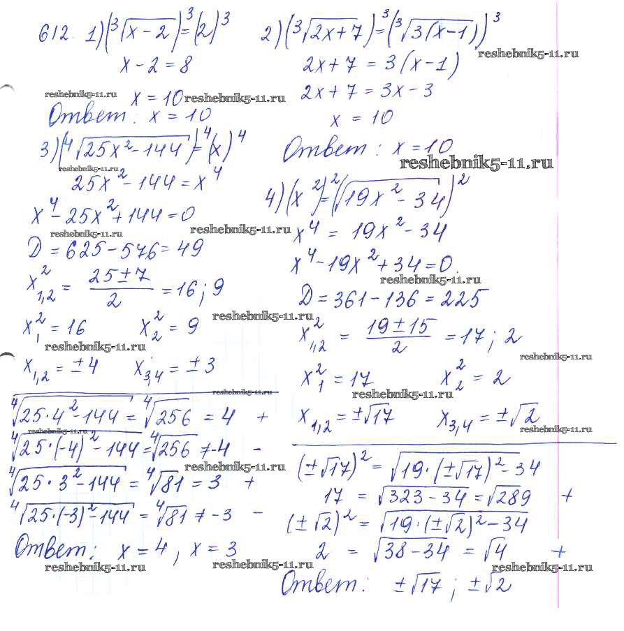 Готовая домашняя работа с ответами по Алгебре за 10 класс Колягин, Ткачёва, Федорова, Шабунин Учебник Базовый и углубленный уровень Просвещение 2017 ФГОС - Упражнения 612