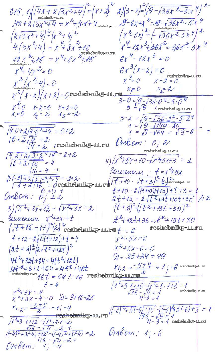 Готовая домашняя работа с ответами по Алгебре за 10 класс Колягин, Ткачёва, Федорова, Шабунин Учебник Базовый и углубленный уровень Просвещение 2017 ФГОС - Упражнения 615
