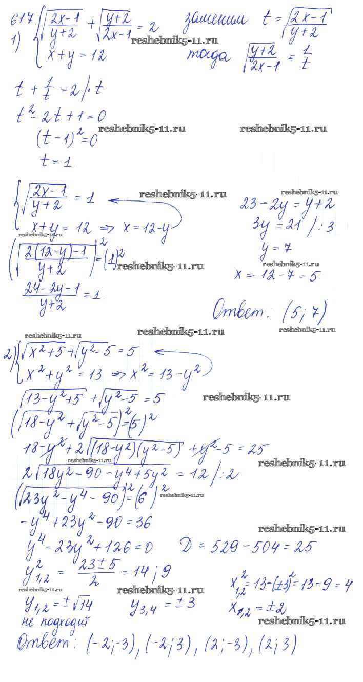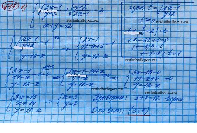 Готовая домашняя работа с ответами по Алгебре за 10 класс Колягин, Ткачёва, Федорова, Шабунин Учебник Базовый и углубленный уровень Просвещение 2017 ФГОС - Упражнения 617