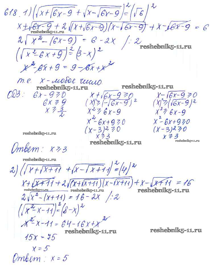 Готовая домашняя работа с ответами по Алгебре за 10 класс Колягин, Ткачёва, Федорова, Шабунин Учебник Базовый и углубленный уровень Просвещение 2017 ФГОС - Упражнения 618