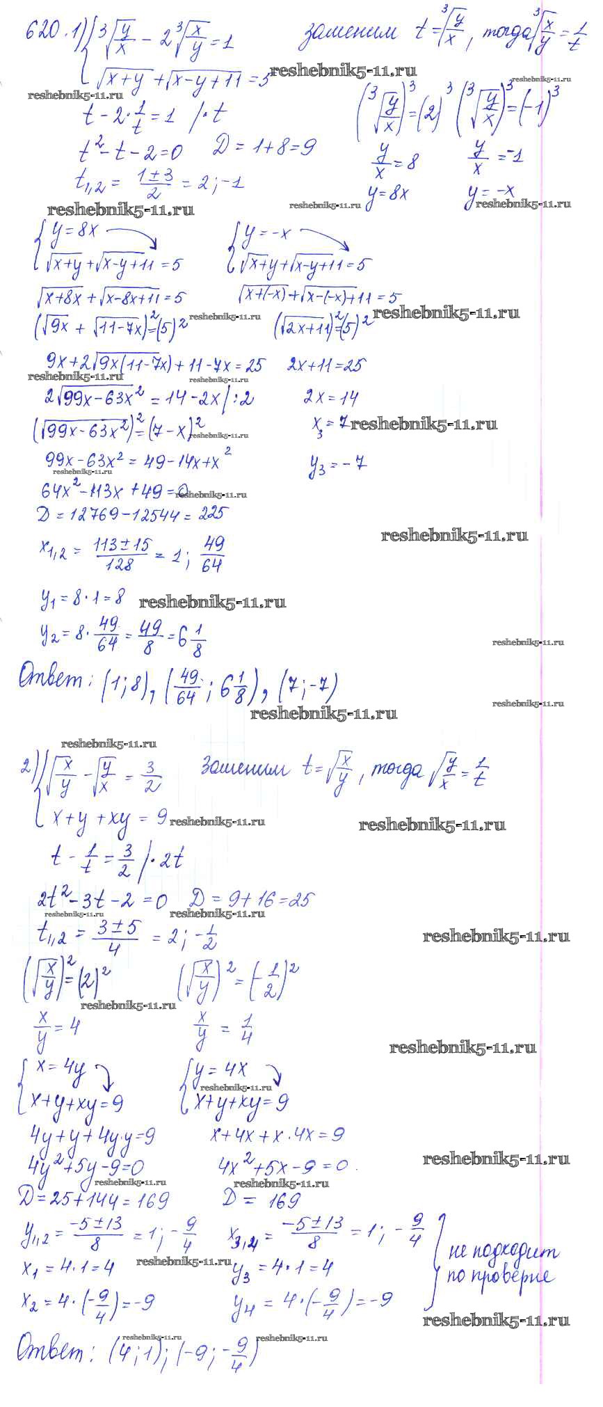 Готовая домашняя работа с ответами по Алгебре за 10 класс Колягин, Ткачёва, Федорова, Шабунин Учебник Базовый и углубленный уровень Просвещение 2017 ФГОС - Упражнения 620