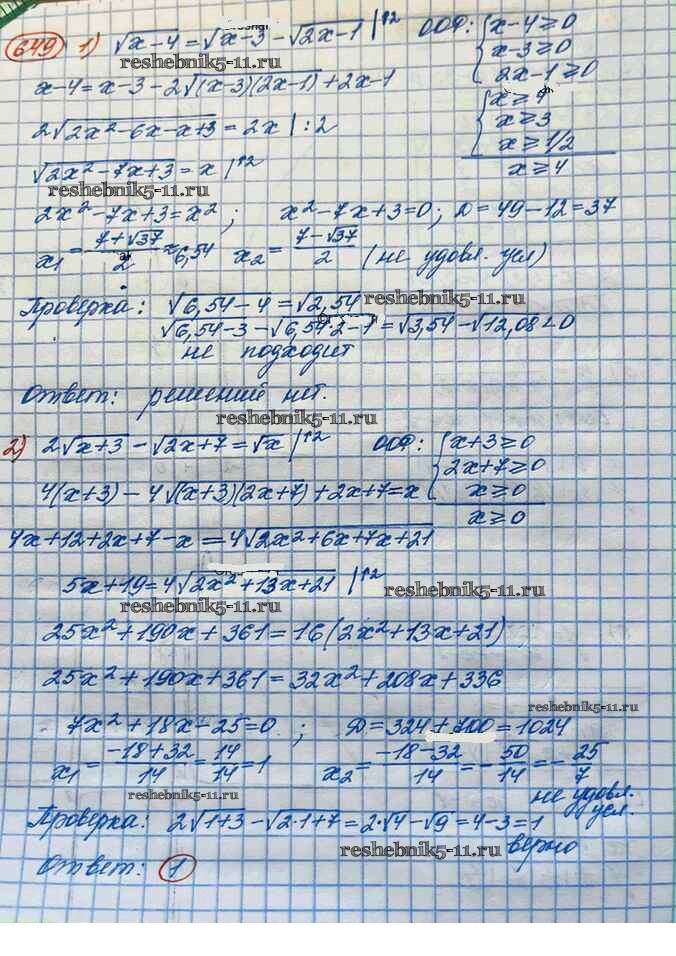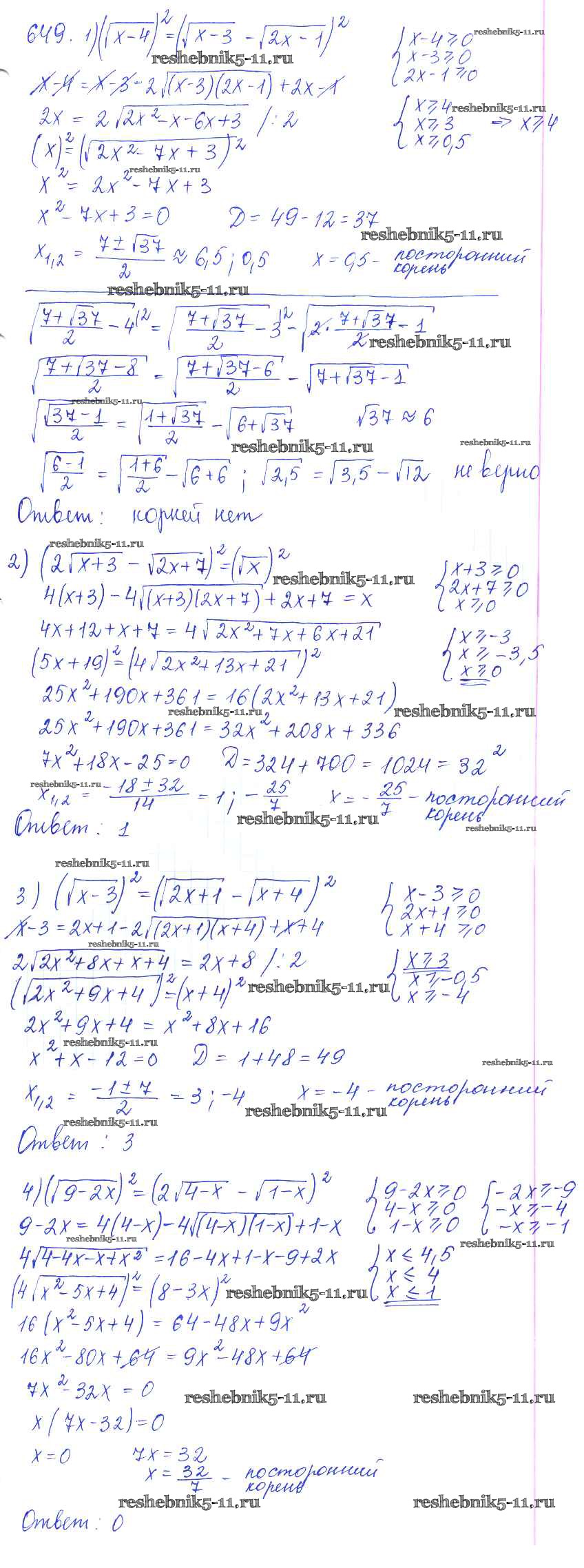 Готовая домашняя работа с ответами по Алгебре за 10 класс Колягин, Ткачёва, Федорова, Шабунин Учебник Базовый и углубленный уровень Просвещение 2017 ФГОС - Упражнения 649