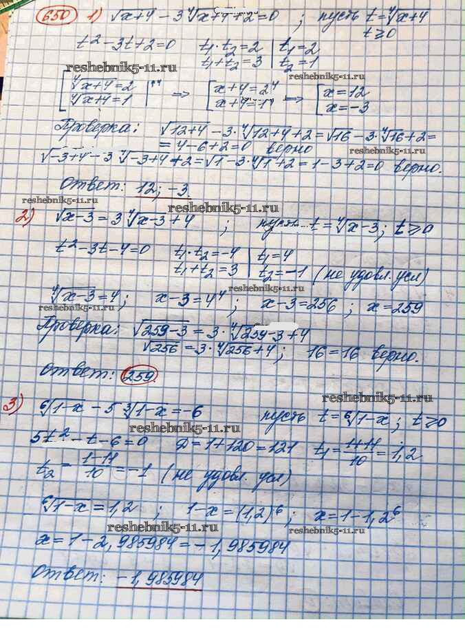 Готовая домашняя работа с ответами по Алгебре за 10 класс Колягин, Ткачёва, Федорова, Шабунин Учебник Базовый и углубленный уровень Просвещение 2017 ФГОС - Упражнения 650