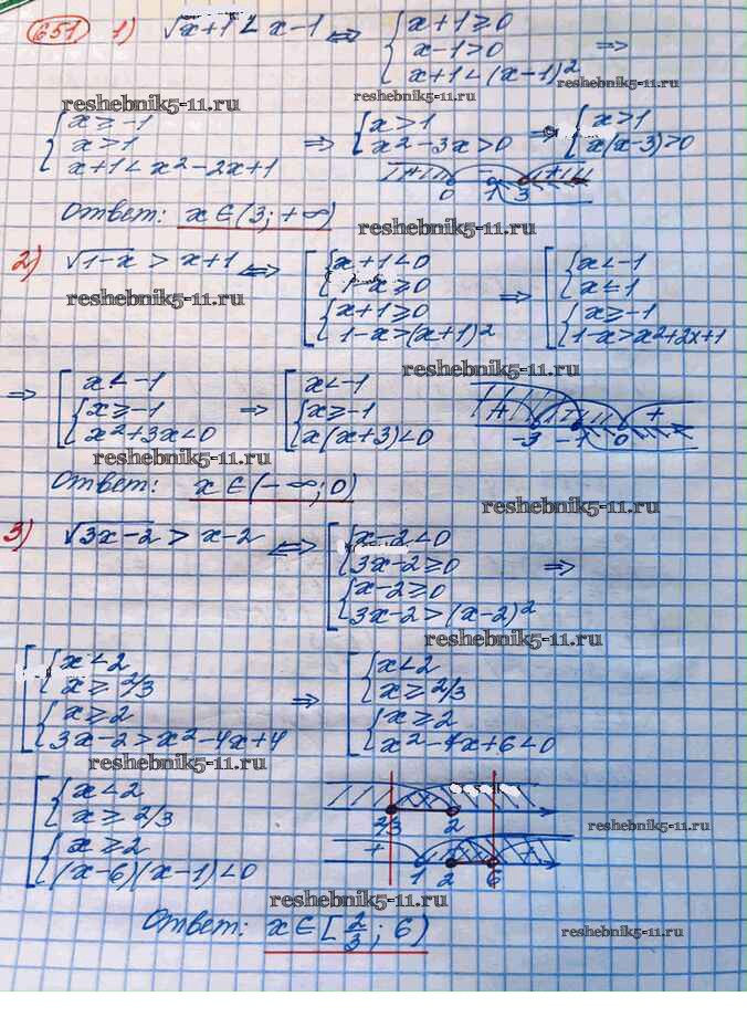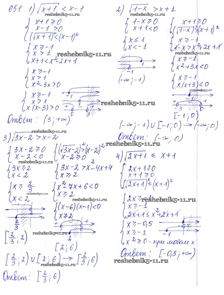 Готовая домашняя работа с ответами по Алгебре за 10 класс Колягин, Ткачёва, Федорова, Шабунин Учебник Базовый и углубленный уровень Просвещение 2017 ФГОС - Упражнения 651