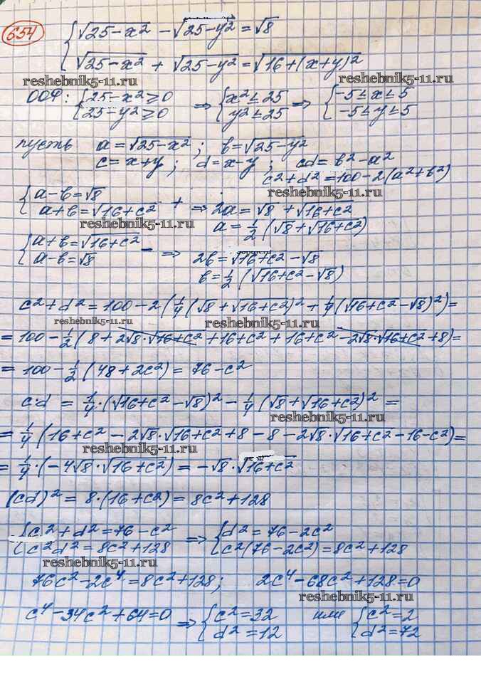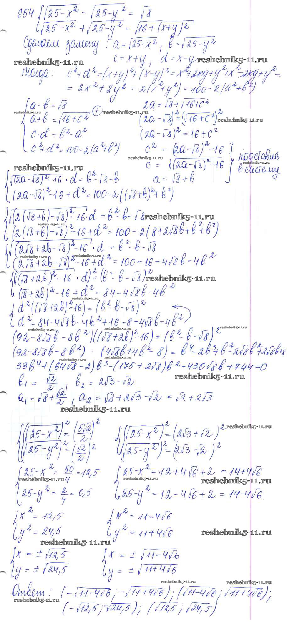 Готовая домашняя работа с ответами по Алгебре за 10 класс Колягин, Ткачёва, Федорова, Шабунин Учебник Базовый и углубленный уровень Просвещение 2017 ФГОС - Упражнения 654