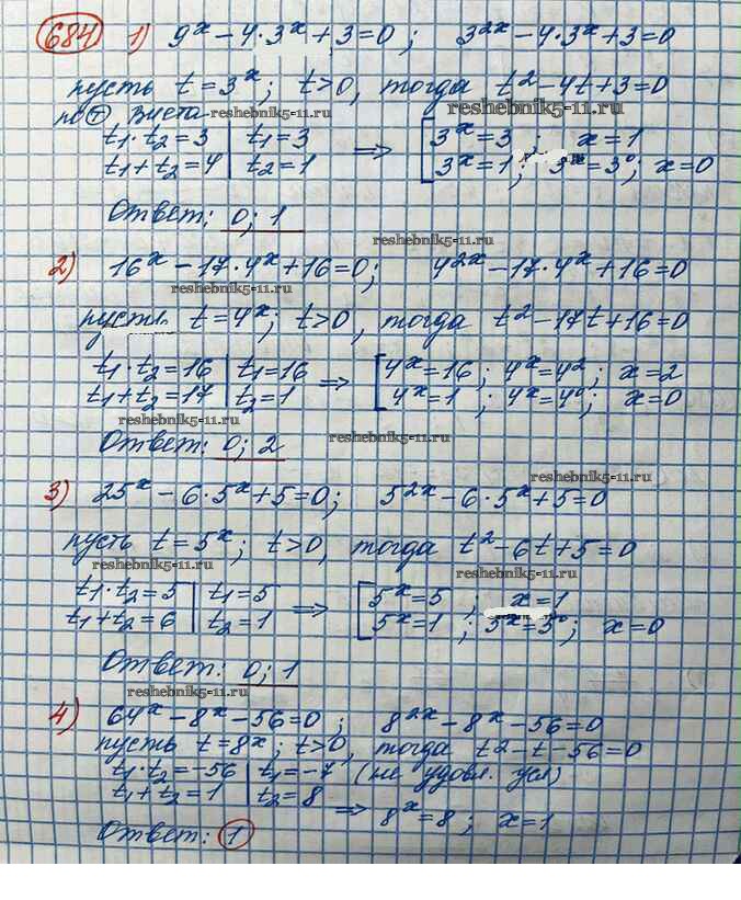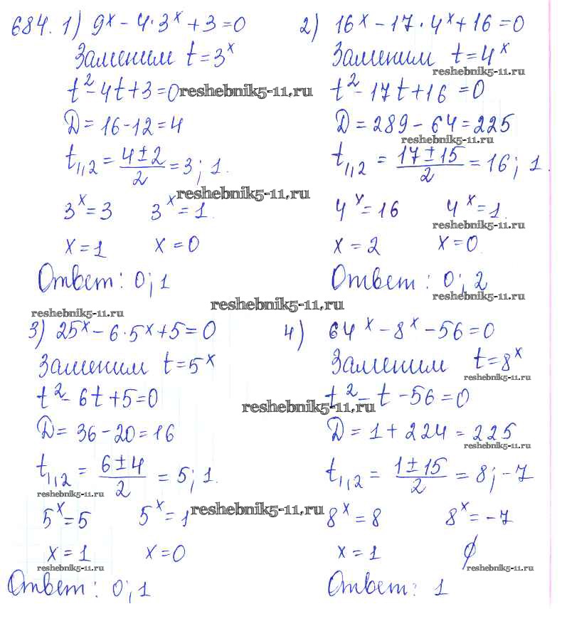 Готовая домашняя работа с ответами по Алгебре за 10 класс Колягин, Ткачёва, Федорова, Шабунин Учебник Базовый и углубленный уровень Просвещение 2017 ФГОС - Упражнения 684