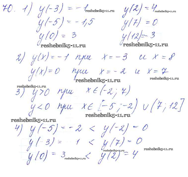 Готовая домашняя работа с ответами по Алгебре за 10 класс Колягин, Ткачёва, Федорова, Шабунин Учебник Базовый и углубленный уровень Просвещение 2017 ФГОС - Упражнения 70