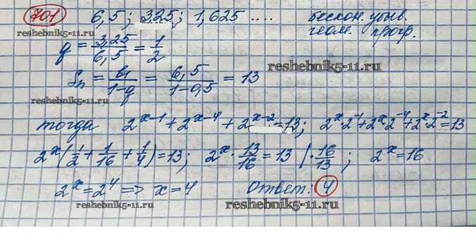 Готовая домашняя работа с ответами по Алгебре за 10 класс Колягин, Ткачёва, Федорова, Шабунин Учебник Базовый и углубленный уровень Просвещение 2017 ФГОС - Упражнения 701