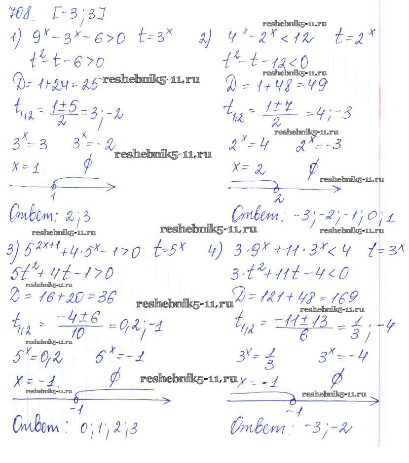 Готовая домашняя работа с ответами по Алгебре за 10 класс Колягин, Ткачёва, Федорова, Шабунин Учебник Базовый и углубленный уровень Просвещение 2017 ФГОС - Упражнения 708