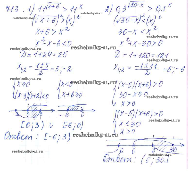Готовая домашняя работа с ответами по Алгебре за 10 класс Колягин, Ткачёва, Федорова, Шабунин Учебник Базовый и углубленный уровень Просвещение 2017 ФГОС - Упражнения 713