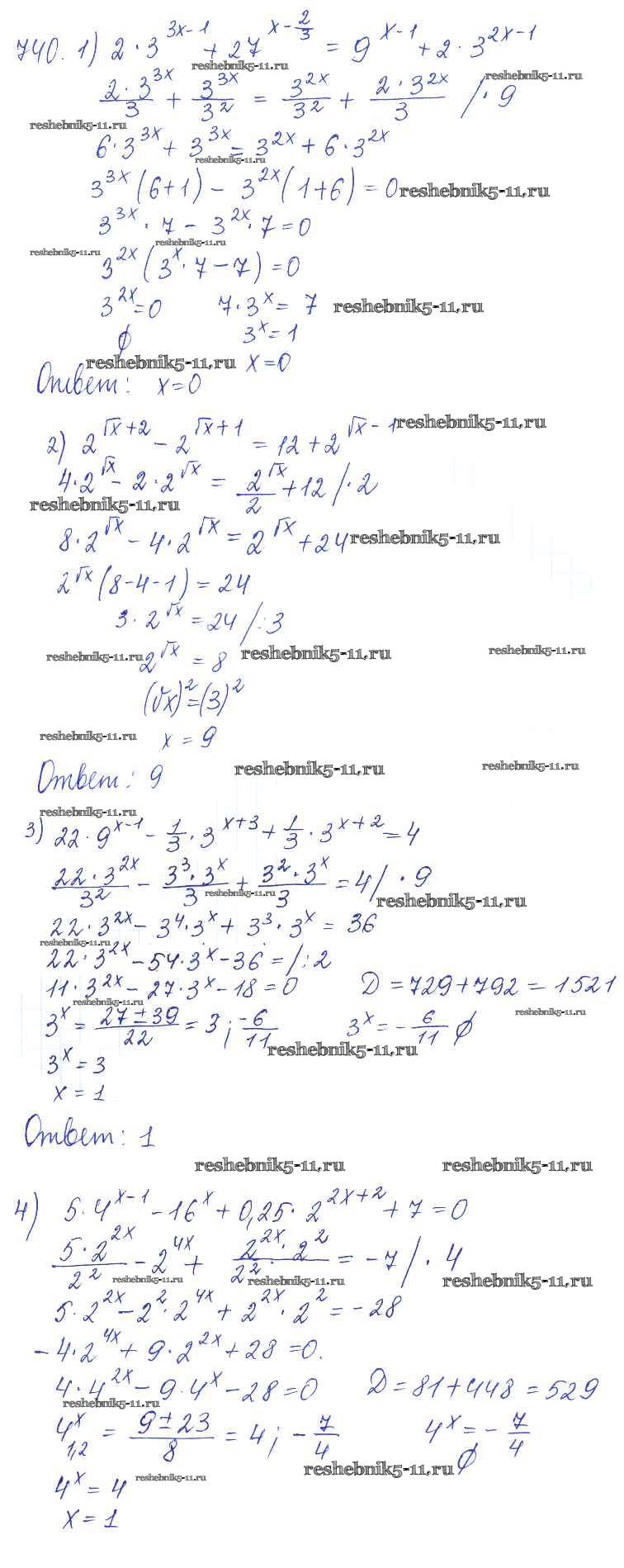 Готовая домашняя работа с ответами по Алгебре за 10 класс Колягин, Ткачёва, Федорова, Шабунин Учебник Базовый и углубленный уровень Просвещение 2017 ФГОС - Упражнения 740
