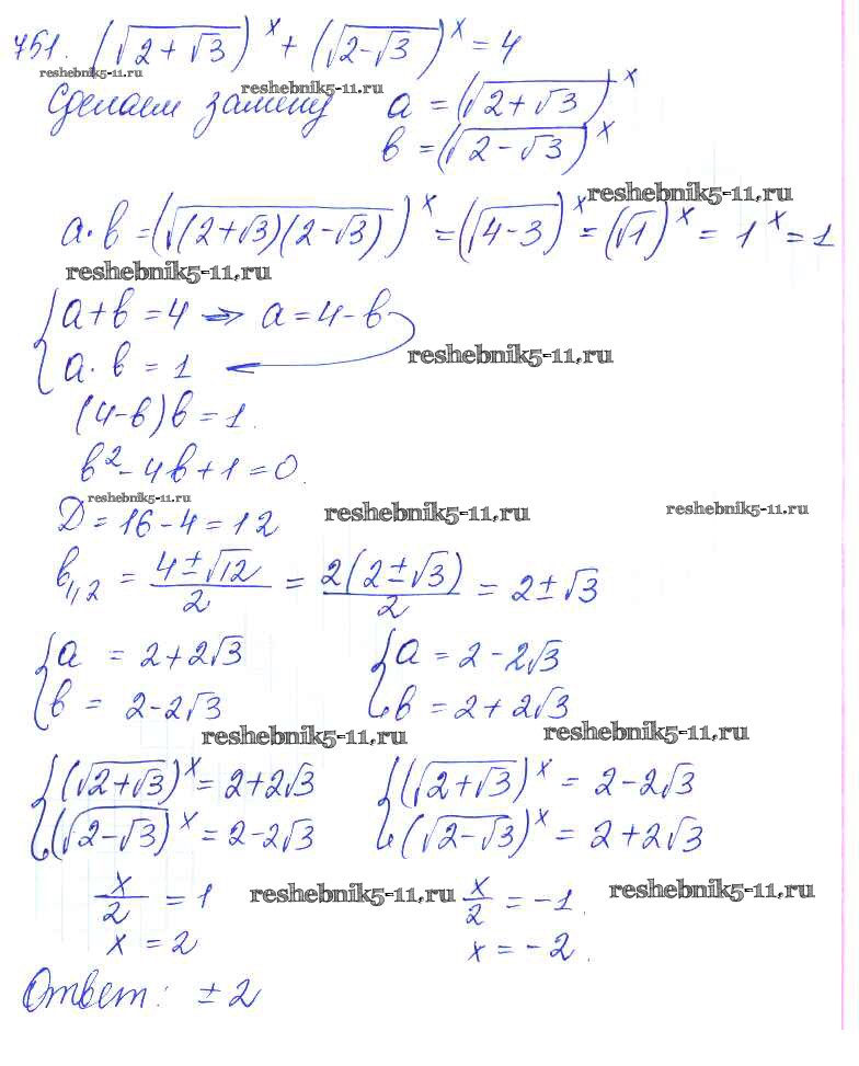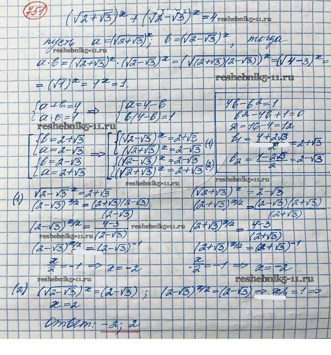 Готовая домашняя работа с ответами по Алгебре за 10 класс Колягин, Ткачёва, Федорова, Шабунин Учебник Базовый и углубленный уровень Просвещение 2017 ФГОС - Упражнения 751
