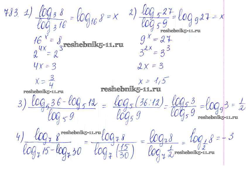 Готовая домашняя работа с ответами по Алгебре за 10 класс Колягин, Ткачёва, Федорова, Шабунин Учебник Базовый и углубленный уровень Просвещение 2017 ФГОС - Упражнения 783