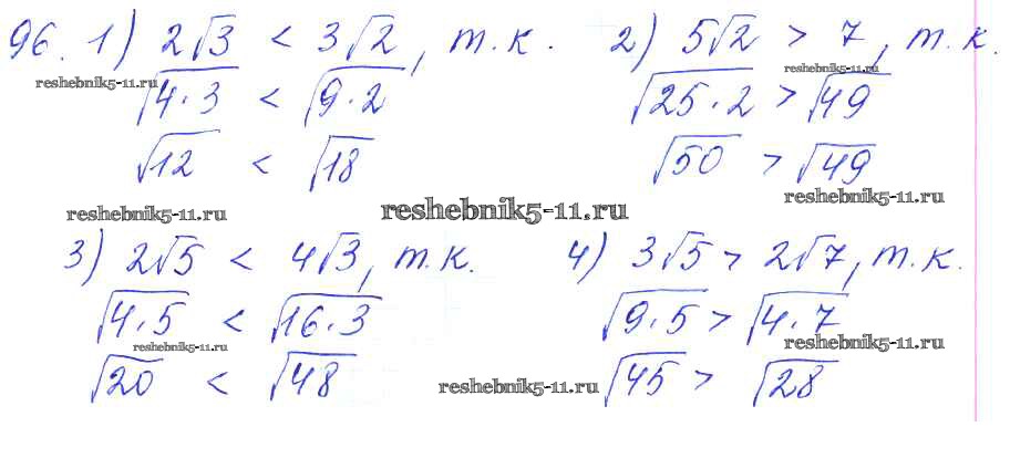 Готовая домашняя работа с ответами по Алгебре за 10 класс Колягин, Ткачёва, Федорова, Шабунин Учебник Базовый и углубленный уровень Просвещение 2017 ФГОС - Упражнения 96