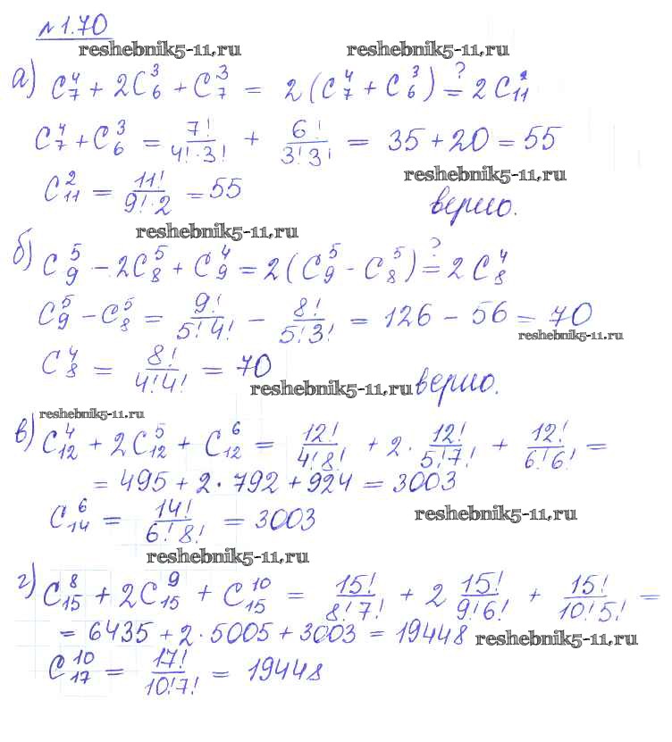 Готовая домашняя работа с ответами по Алгебре за 10 класс Никольский, Потапов, Решетников, Шевкин Учебник МГУ - школе Базовый и углубленный уровень Просвещение 2015 ФГОС - §1. Действительные числа 70
