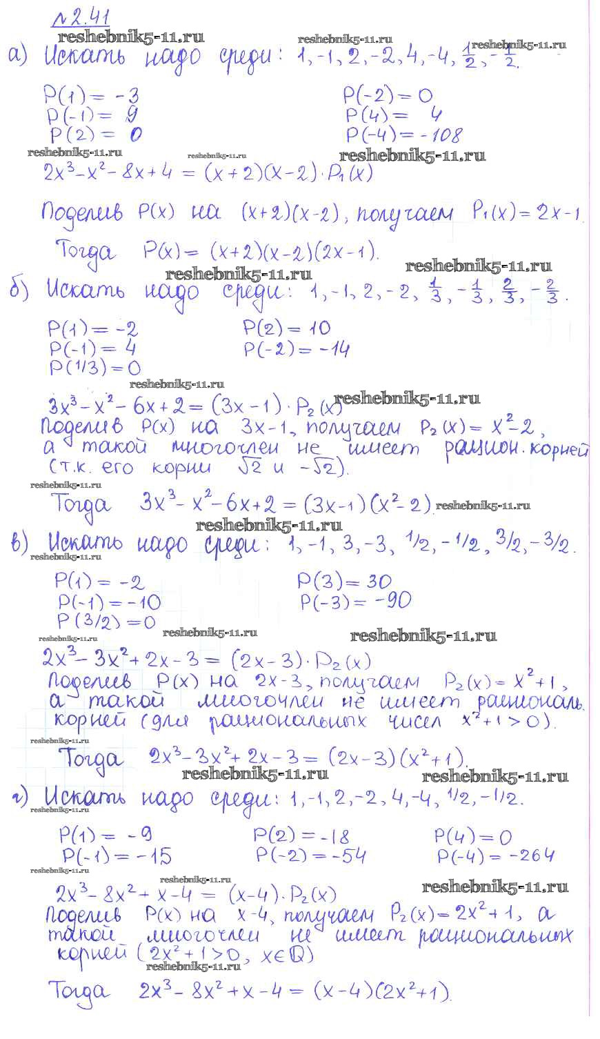 Готовая домашняя работа с ответами по Алгебре за 10 класс Никольский, Потапов, Решетников, Шевкин Учебник МГУ - школе Базовый и углубленный уровень Просвещение 2015 ФГОС - §2. Рациональные уравнения и неравенства 41