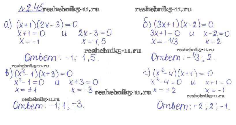 Готовая домашняя работа с ответами по Алгебре за 10 класс Никольский, Потапов, Решетников, Шевкин Учебник МГУ - школе Базовый и углубленный уровень Просвещение 2015 ФГОС - §2. Рациональные уравнения и неравенства 45