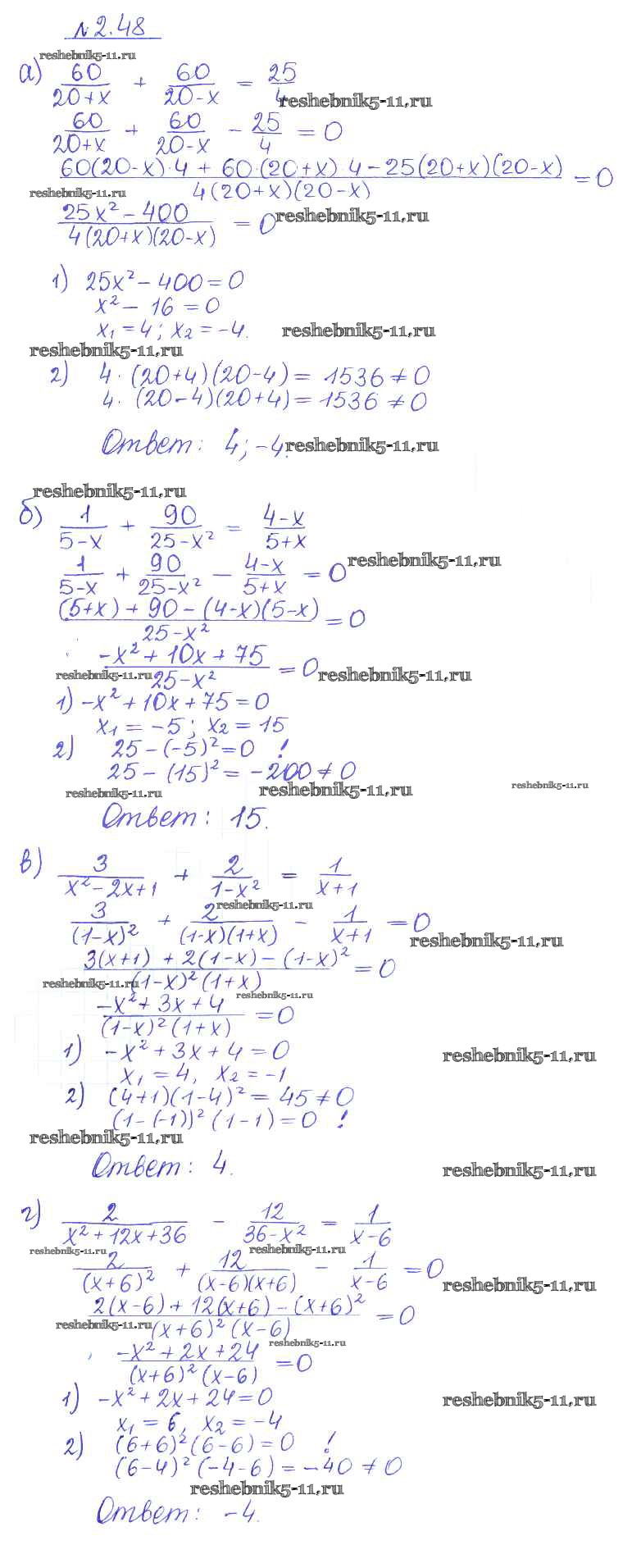 Готовая домашняя работа с ответами по Алгебре за 10 класс Никольский, Потапов, Решетников, Шевкин Учебник МГУ - школе Базовый и углубленный уровень Просвещение 2015 ФГОС - §2. Рациональные уравнения и неравенства 48