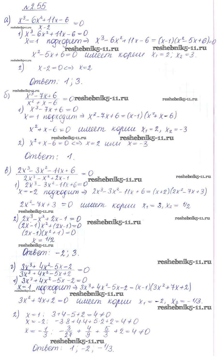 Готовая домашняя работа с ответами по Алгебре за 10 класс Никольский, Потапов, Решетников, Шевкин Учебник МГУ - школе Базовый и углубленный уровень Просвещение 2015 ФГОС - §2. Рациональные уравнения и неравенства 55