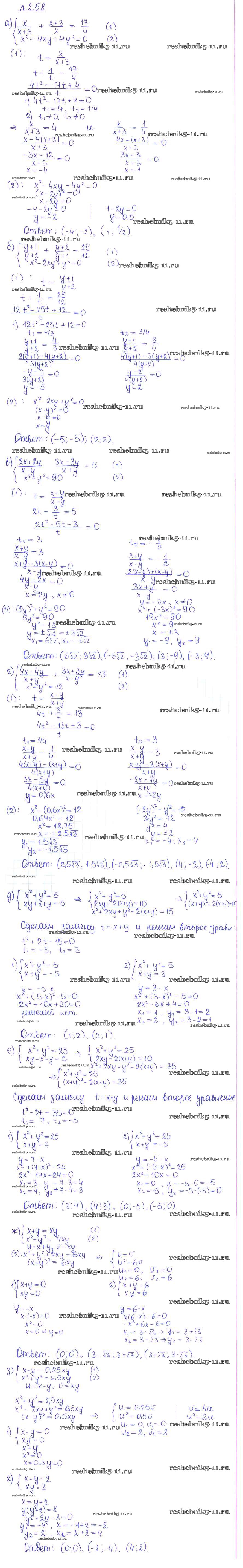 Готовая домашняя работа с ответами по Алгебре за 10 класс Никольский, Потапов, Решетников, Шевкин Учебник МГУ - школе Базовый и углубленный уровень Просвещение 2015 ФГОС - §2. Рациональные уравнения и неравенства 58