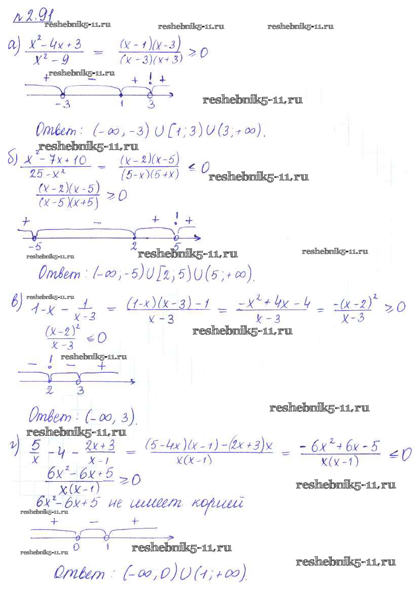 Готовая домашняя работа с ответами по Алгебре за 10 класс Никольский, Потапов, Решетников, Шевкин Учебник МГУ - школе Базовый и углубленный уровень Просвещение 2015 ФГОС - §2. Рациональные уравнения и неравенства 91