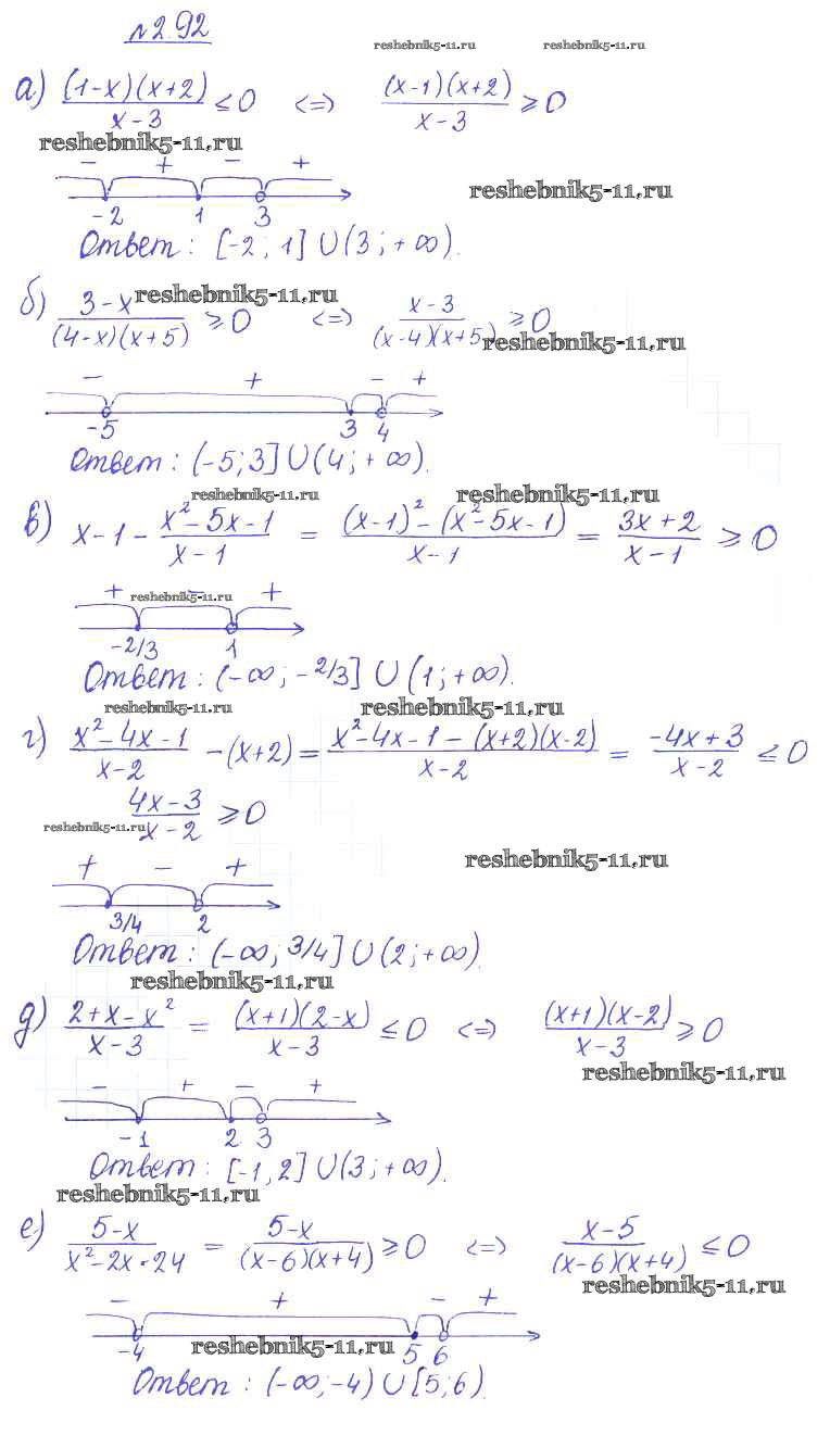 Готовая домашняя работа с ответами по Алгебре за 10 класс Никольский, Потапов, Решетников, Шевкин Учебник МГУ - школе Базовый и углубленный уровень Просвещение 2015 ФГОС - §2. Рациональные уравнения и неравенства 92