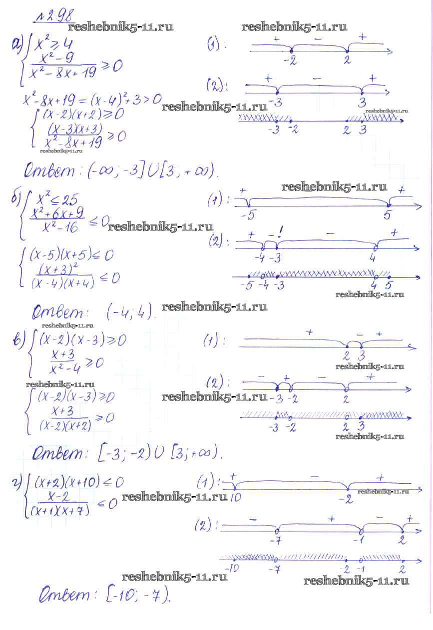 Готовая домашняя работа с ответами по Алгебре за 10 класс Никольский, Потапов, Решетников, Шевкин Учебник МГУ - школе Базовый и углубленный уровень Просвещение 2015 ФГОС - §2. Рациональные уравнения и неравенства 98