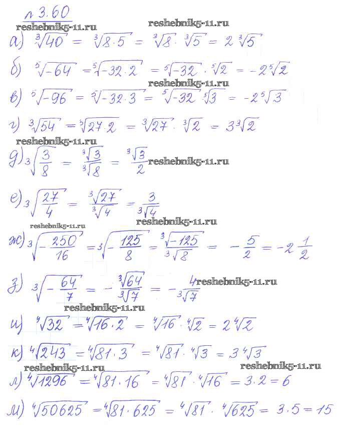Готовая домашняя работа с ответами по Алгебре за 10 класс Никольский, Потапов, Решетников, Шевкин Учебник МГУ - школе Базовый и углубленный уровень Просвещение 2015 ФГОС - §3. Корень степени n 60