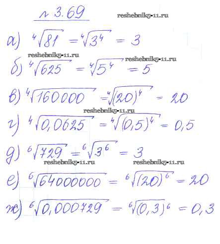 Готовая домашняя работа с ответами по Алгебре за 10 класс Никольский, Потапов, Решетников, Шевкин Учебник МГУ - школе Базовый и углубленный уровень Просвещение 2015 ФГОС - §3. Корень степени n 69