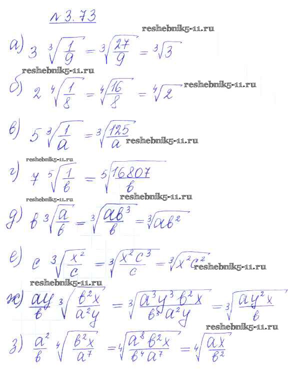 Готовая домашняя работа с ответами по Алгебре за 10 класс Никольский, Потапов, Решетников, Шевкин Учебник МГУ - школе Базовый и углубленный уровень Просвещение 2015 ФГОС - §3. Корень степени n 73