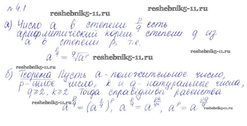 Готовая домашняя работа с ответами по Алгебре за 10 класс Никольский, Потапов, Решетников, Шевкин Учебник МГУ - школе Базовый и углубленный уровень Просвещение 2015 ФГОС - §4. Степень положительного числа 1