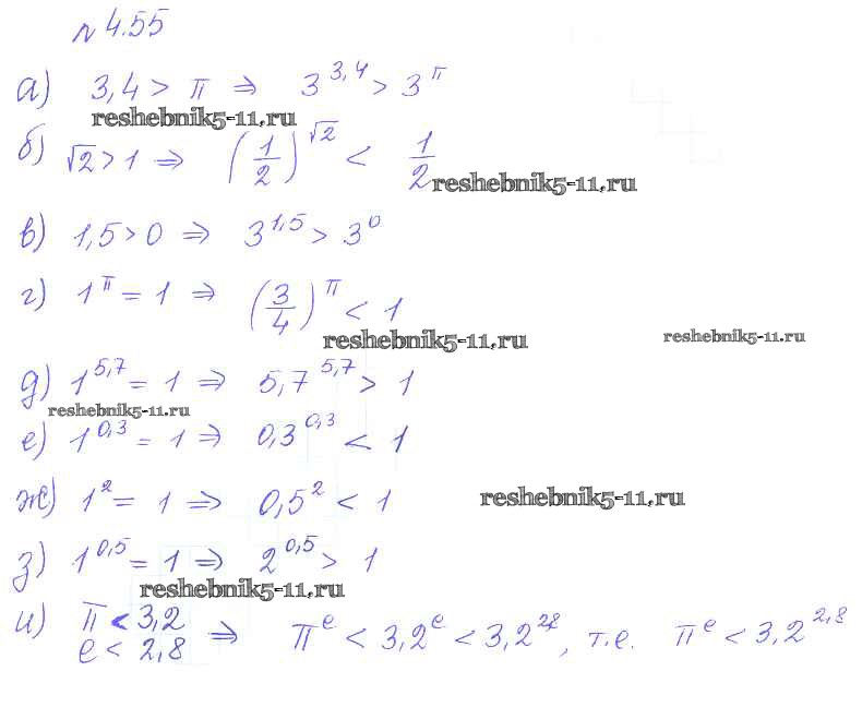 Готовая домашняя работа с ответами по Алгебре за 10 класс Никольский, Потапов, Решетников, Шевкин Учебник МГУ - школе Базовый и углубленный уровень Просвещение 2015 ФГОС - §4. Степень положительного числа 55