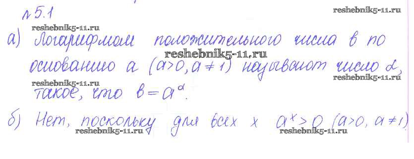 Готовая домашняя работа с ответами по Алгебре за 10 класс Никольский, Потапов, Решетников, Шевкин Учебник МГУ - школе Базовый и углубленный уровень Просвещение 2015 ФГОС - §5. Логарифмы 1
