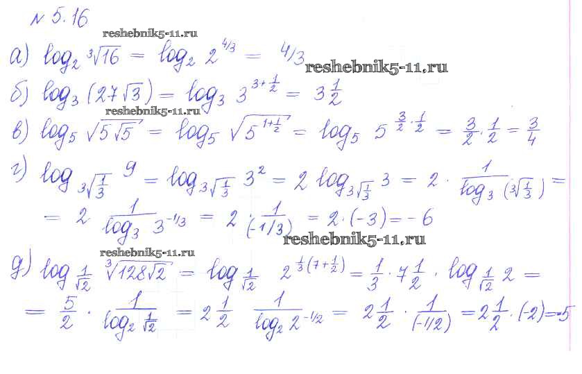 Готовая домашняя работа с ответами по Алгебре за 10 класс Никольский, Потапов, Решетников, Шевкин Учебник МГУ - школе Базовый и углубленный уровень Просвещение 2015 ФГОС - §5. Логарифмы 16