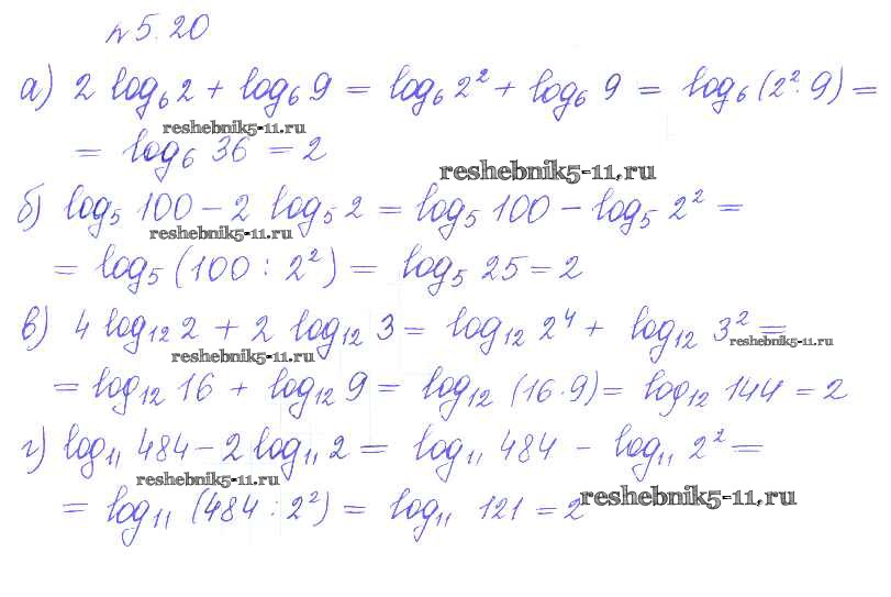 Готовая домашняя работа с ответами по Алгебре за 10 класс Никольский, Потапов, Решетников, Шевкин Учебник МГУ - школе Базовый и углубленный уровень Просвещение 2015 ФГОС - §5. Логарифмы 20