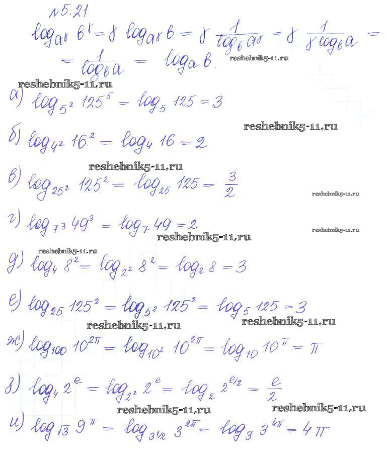 Готовая домашняя работа с ответами по Алгебре за 10 класс Никольский, Потапов, Решетников, Шевкин Учебник МГУ - школе Базовый и углубленный уровень Просвещение 2015 ФГОС - §5. Логарифмы 21