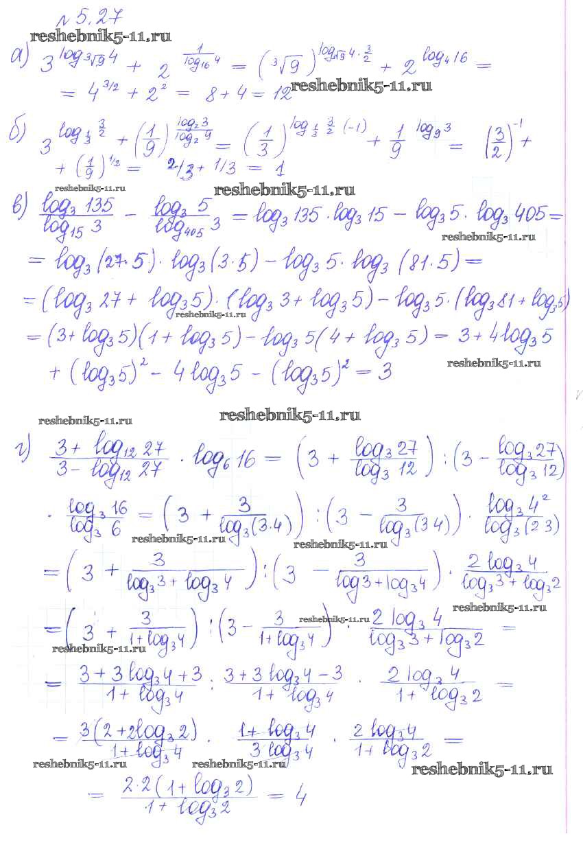Готовая домашняя работа с ответами по Алгебре за 10 класс Никольский, Потапов, Решетников, Шевкин Учебник МГУ - школе Базовый и углубленный уровень Просвещение 2015 ФГОС - §5. Логарифмы 27