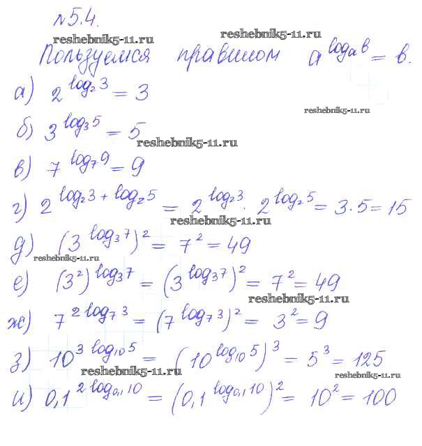 Готовая домашняя работа с ответами по Алгебре за 10 класс Никольский, Потапов, Решетников, Шевкин Учебник МГУ - школе Базовый и углубленный уровень Просвещение 2015 ФГОС - §5. Логарифмы 4
