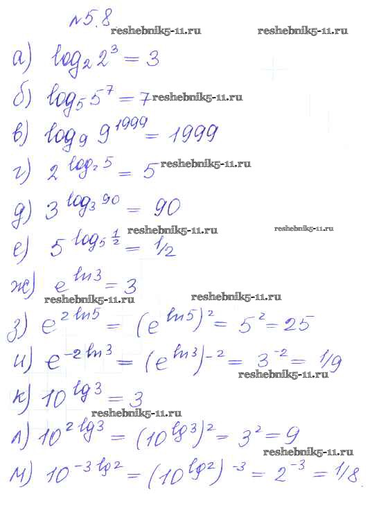Готовая домашняя работа с ответами по Алгебре за 10 класс Никольский, Потапов, Решетников, Шевкин Учебник МГУ - школе Базовый и углубленный уровень Просвещение 2015 ФГОС - §5. Логарифмы 8