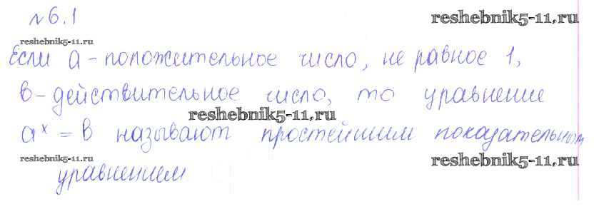 Готовая домашняя работа с ответами по Алгебре за 10 класс Никольский, Потапов, Решетников, Шевкин Учебник МГУ - школе Базовый и углубленный уровень Просвещение 2015 ФГОС - §6. Показательные и логарифмические уравнения и неравенства 1