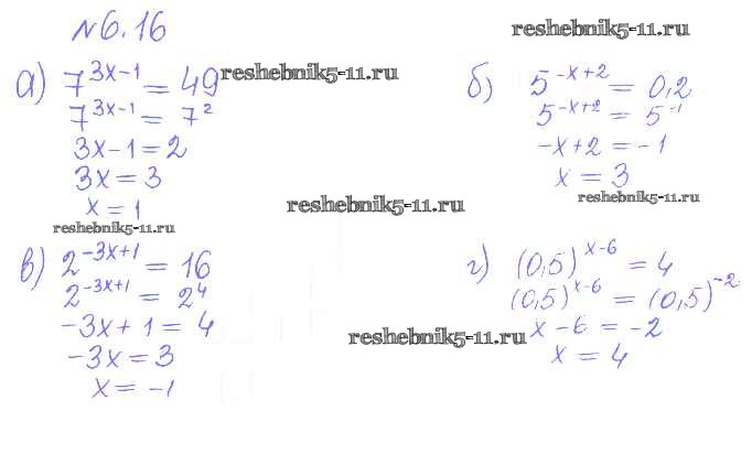Готовая домашняя работа с ответами по Алгебре за 10 класс Никольский, Потапов, Решетников, Шевкин Учебник МГУ - школе Базовый и углубленный уровень Просвещение 2015 ФГОС - §6. Показательные и логарифмические уравнения и неравенства 16