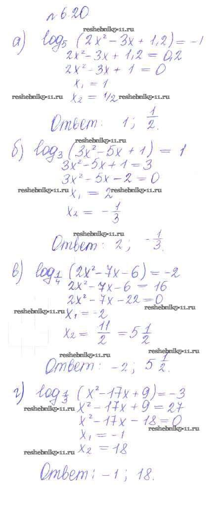 Готовая домашняя работа с ответами по Алгебре за 10 класс Никольский, Потапов, Решетников, Шевкин Учебник МГУ - школе Базовый и углубленный уровень Просвещение 2015 ФГОС - §6. Показательные и логарифмические уравнения и неравенства 20
